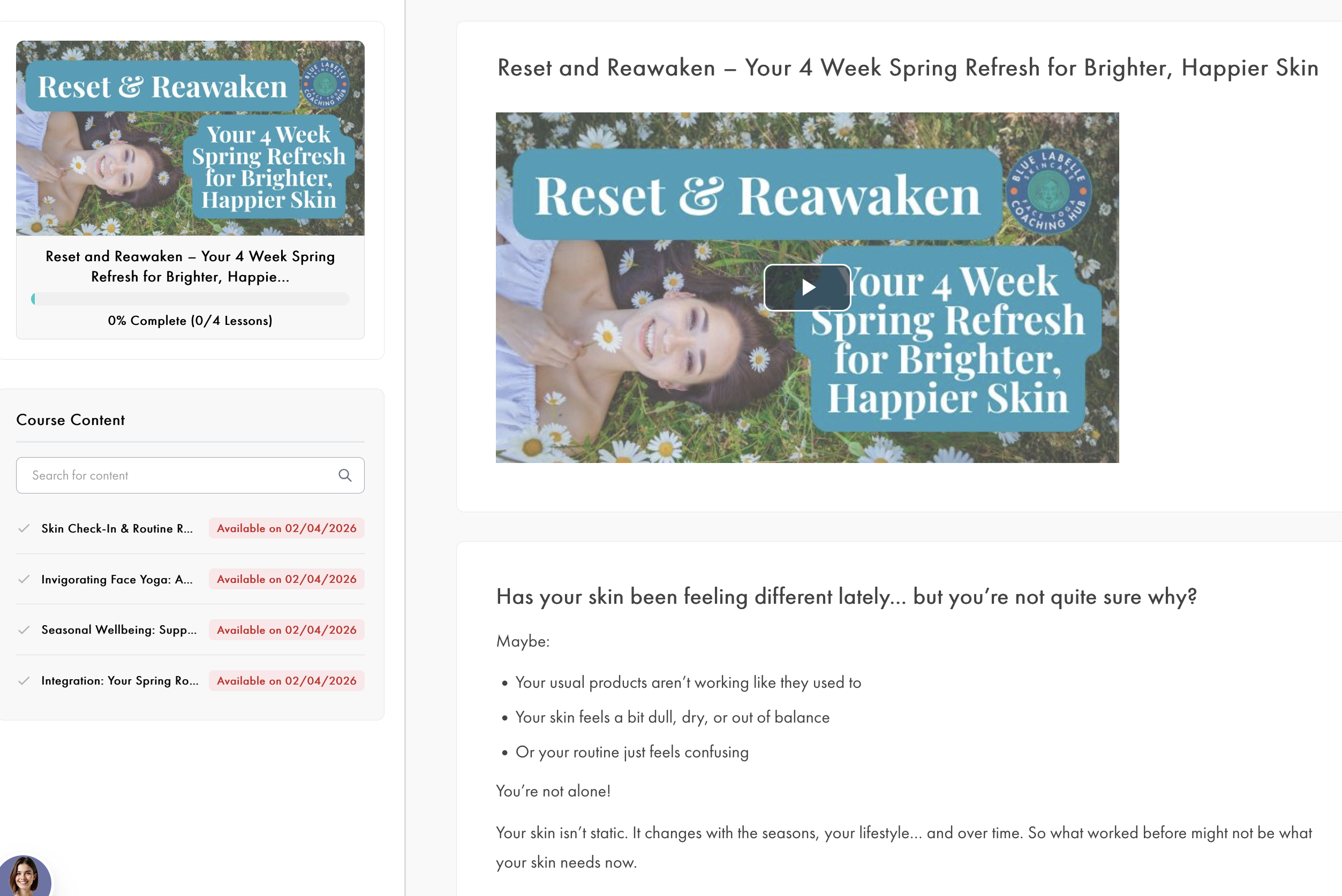 A: Absolutely – this course is designed for anyone wanting to simplify, refresh, and support their skin.